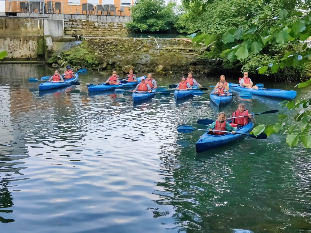 „Auf dem Lagerplatz waren wir dann im strömenden Regen Kanu fahren, später kam aber wieder die Sonne raus, da waren wir nur noch nass weil das Boot voller Wasser war.