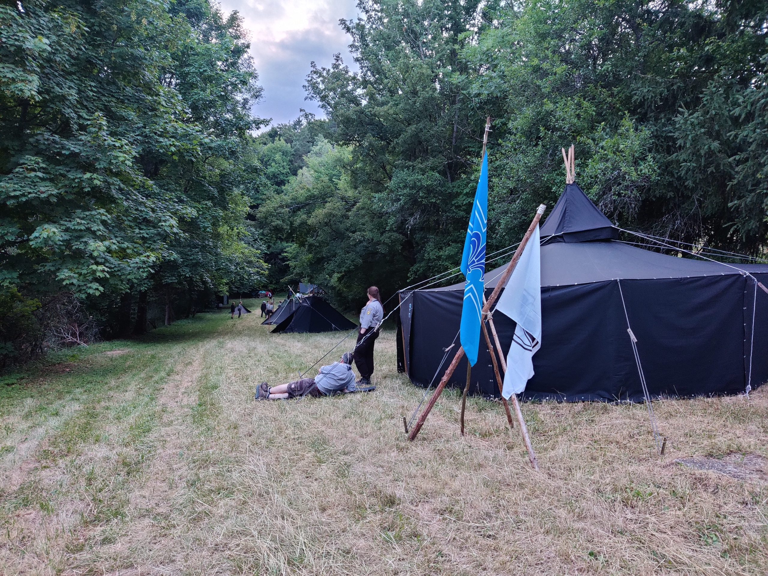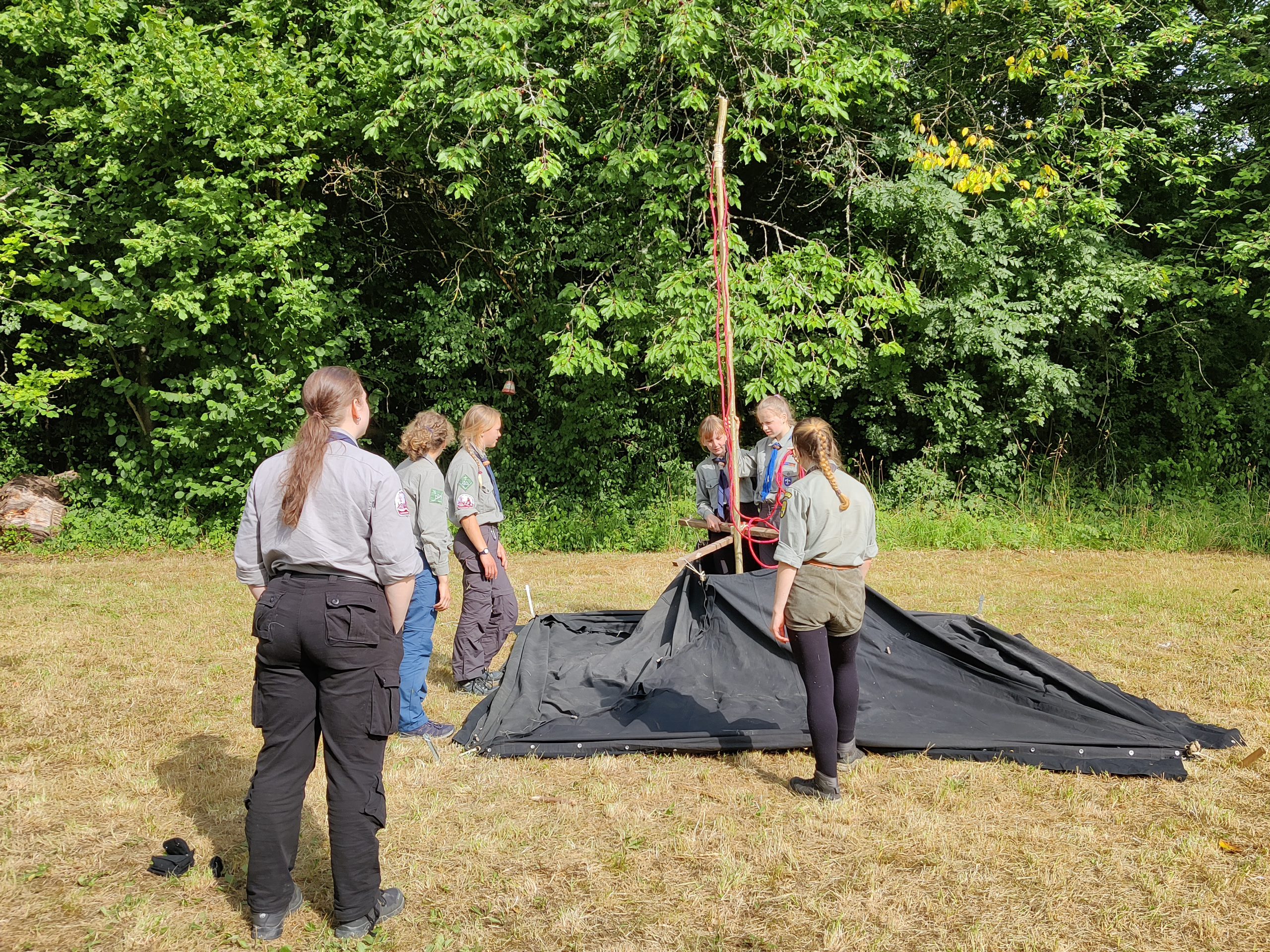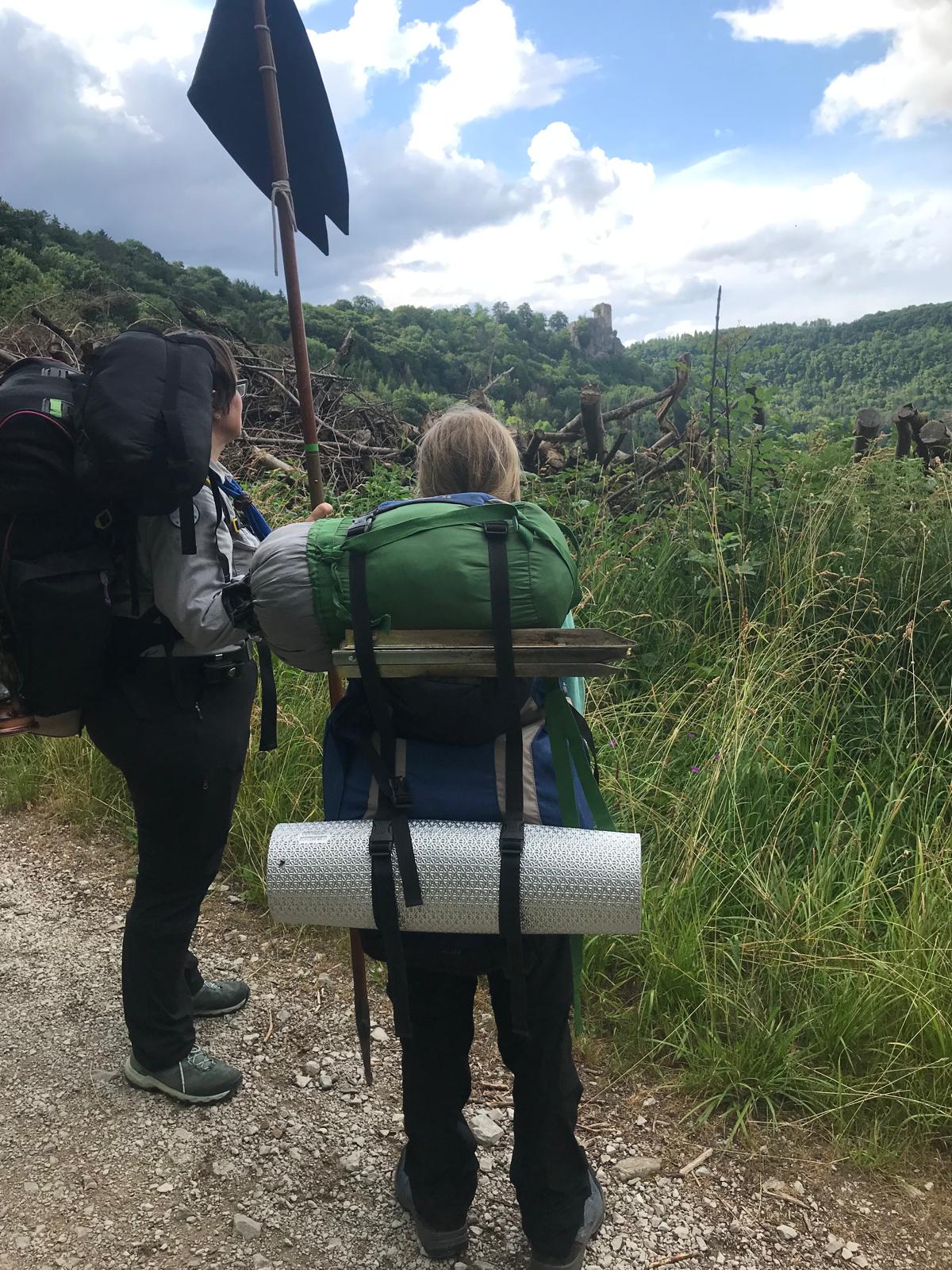 Anke, Jenny und Malte schlugen direkt ihre Kohte auf dem Zeltplatz der Fürther Pfadis im Affaltertal auf und unternahmen von dort aus Tagestouren mit einer Übernachtung auf der Ruine Neideck.