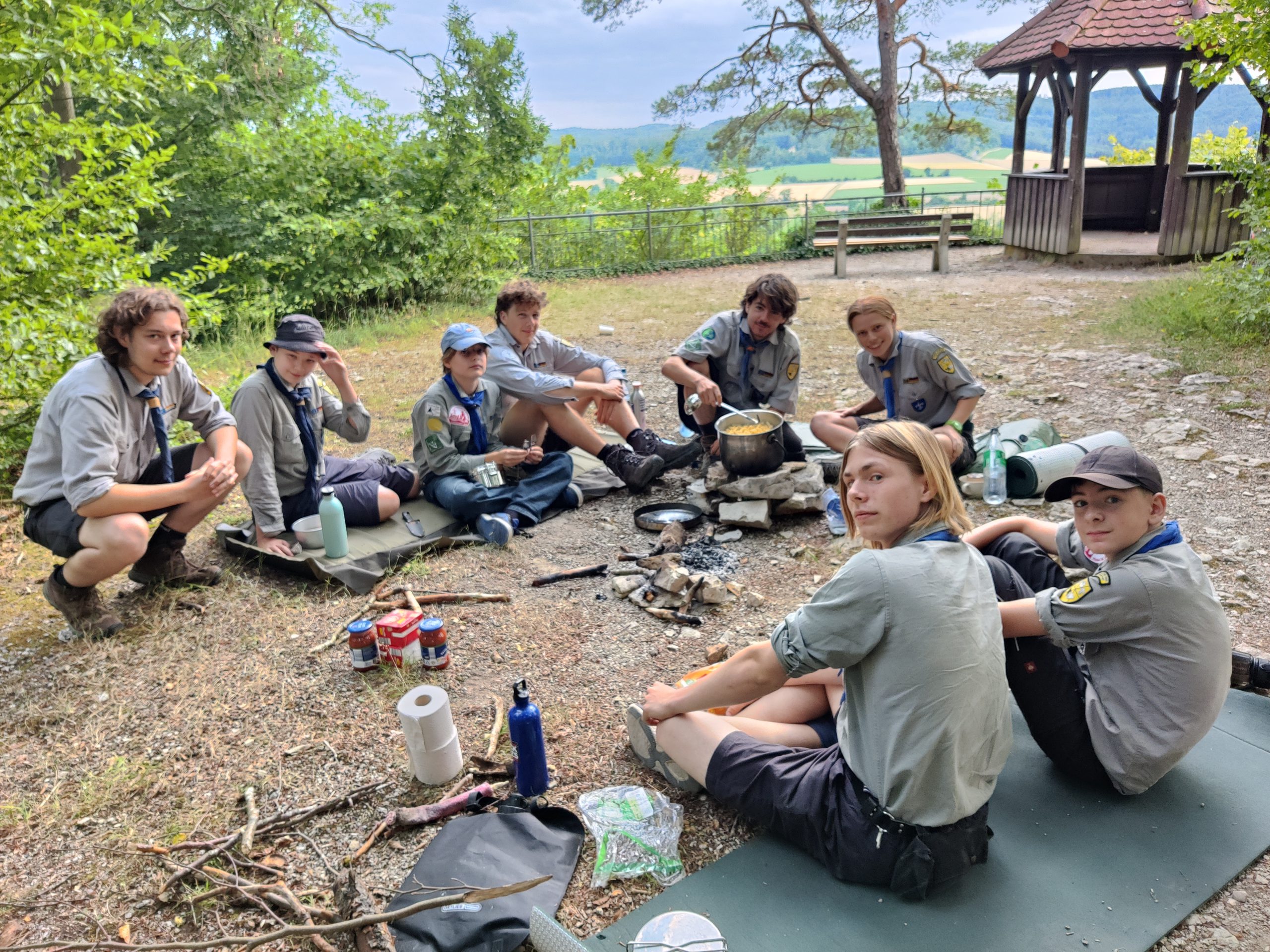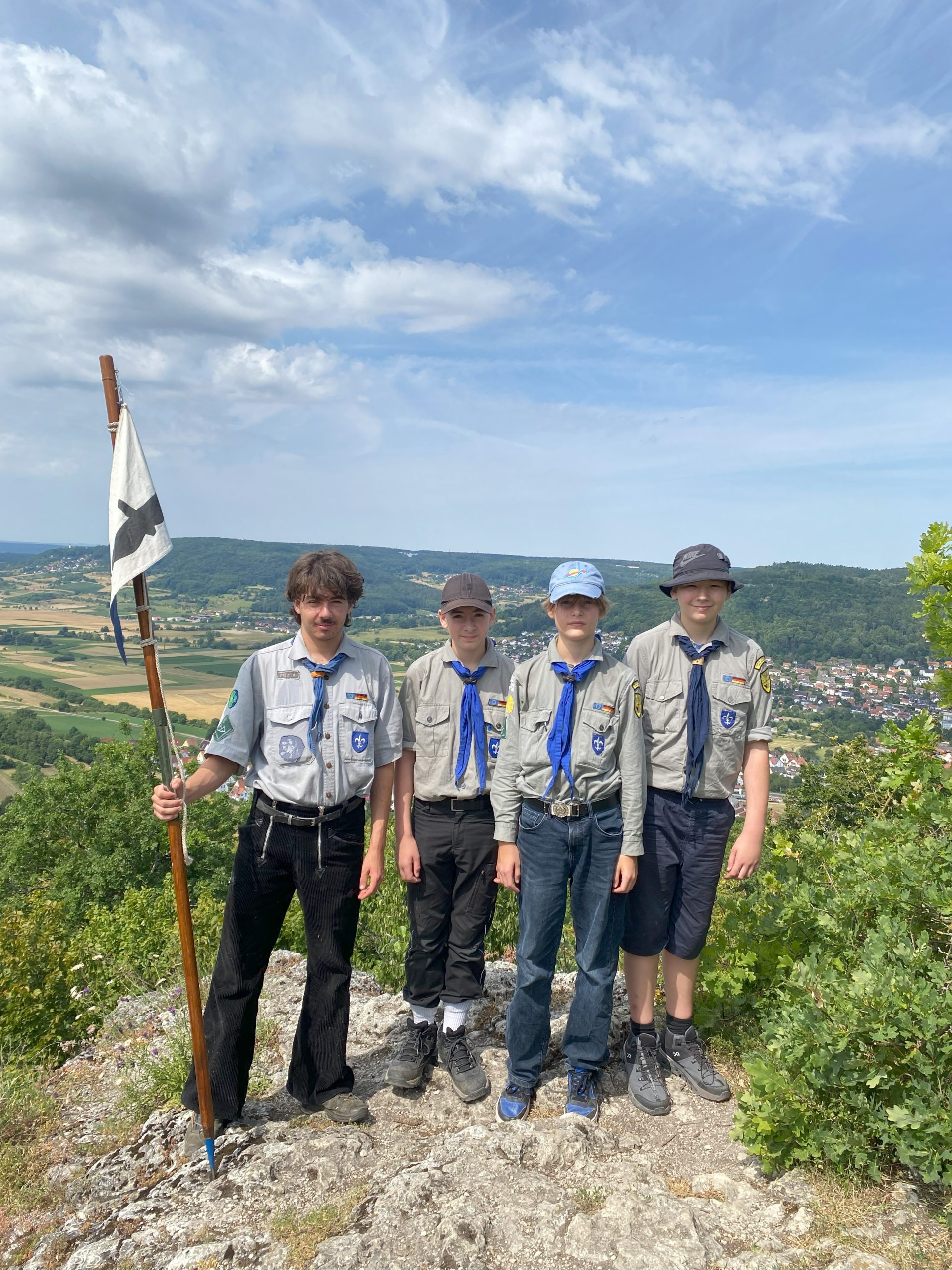 Die 7 Jungs der Sturmmöwen und Turmfalken wanderten mit Ole, Flo und Tessa von Pretzfeld aus durchs malerische Aufseßtal nach Ebermannstadt. Nudeln kochen hoch über Heiligenstadt, Besuch der Stauffenberger auf Schloss Greifenstein und ein kulinarischer Ausflug in einen traditionellen fränkischen Biergarten, prägten ihre Tage.